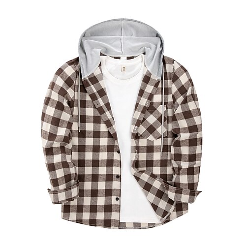 Per uomo Camicia Camicia di flanella Sovracamicia A quadri Esterno Strada Nero Bianco Rosso Blu Manica lunga Con cappuccio Inverno Primavera Autunno Abbigliamento