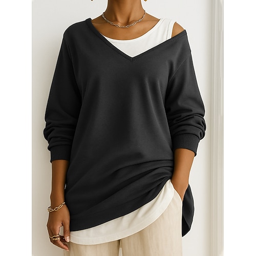 Per donna Blusa Patchwork Blocco di colori Elegante Casual Manica Lunga Girocollo Top Regolari Quotidiano Nero Rosa Verde Grigio Estate Primavera Autunno