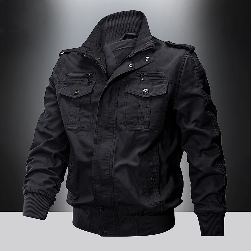 Men's Utility Jacket Transition Jacket Going out Pocket All Seasons Plain Classic Lapel Regular Black Khaki Army Green Jacket