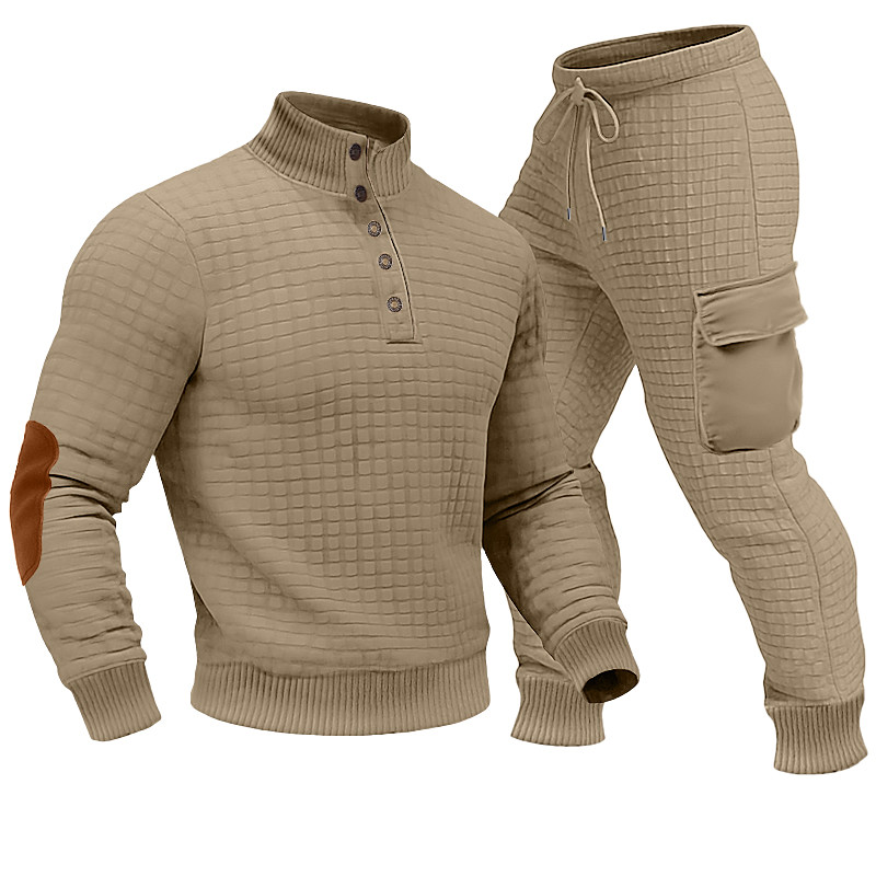 Men's Waffle Tracksuit Set Stand Collar Daily Outdoor Vacation Athleisure Drawstring Plain WhiteWine White Khaki Activewear Sports Fashion Fall