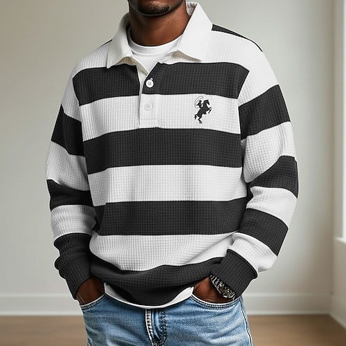 Per uomo Strisce orizzontali Polo Polo da rugby Polo da Rugby Manica Lunga Magliette polo Bavero Abbigliamento Sportivo Casual Scuola Athleisure Abbigliamento quotidiano Stampa 3D Primavera Autunno