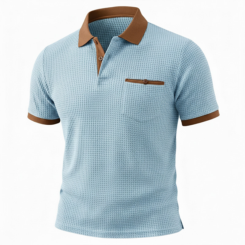 Men's Waffle Polo Shirts Textured Vacation Casual Lapel Short Sleeves Fashion Plaid / Striped / Chevron / Round Print Summer Dry-Fit Blue Yellow Pink Red Light Purple Orange Waffle Polo Shirts