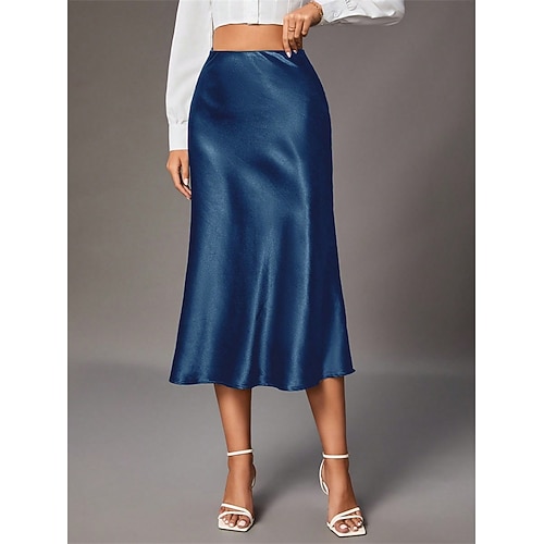 Per donna Gonne in raso Elegante Vintage Moda Midi Vita Alta Gonne Semplice Arricciato Patchwork Inelastico Quotidiano Feste Vinaccia Mandorla Rosa Verde militare Estate Spandex Raso