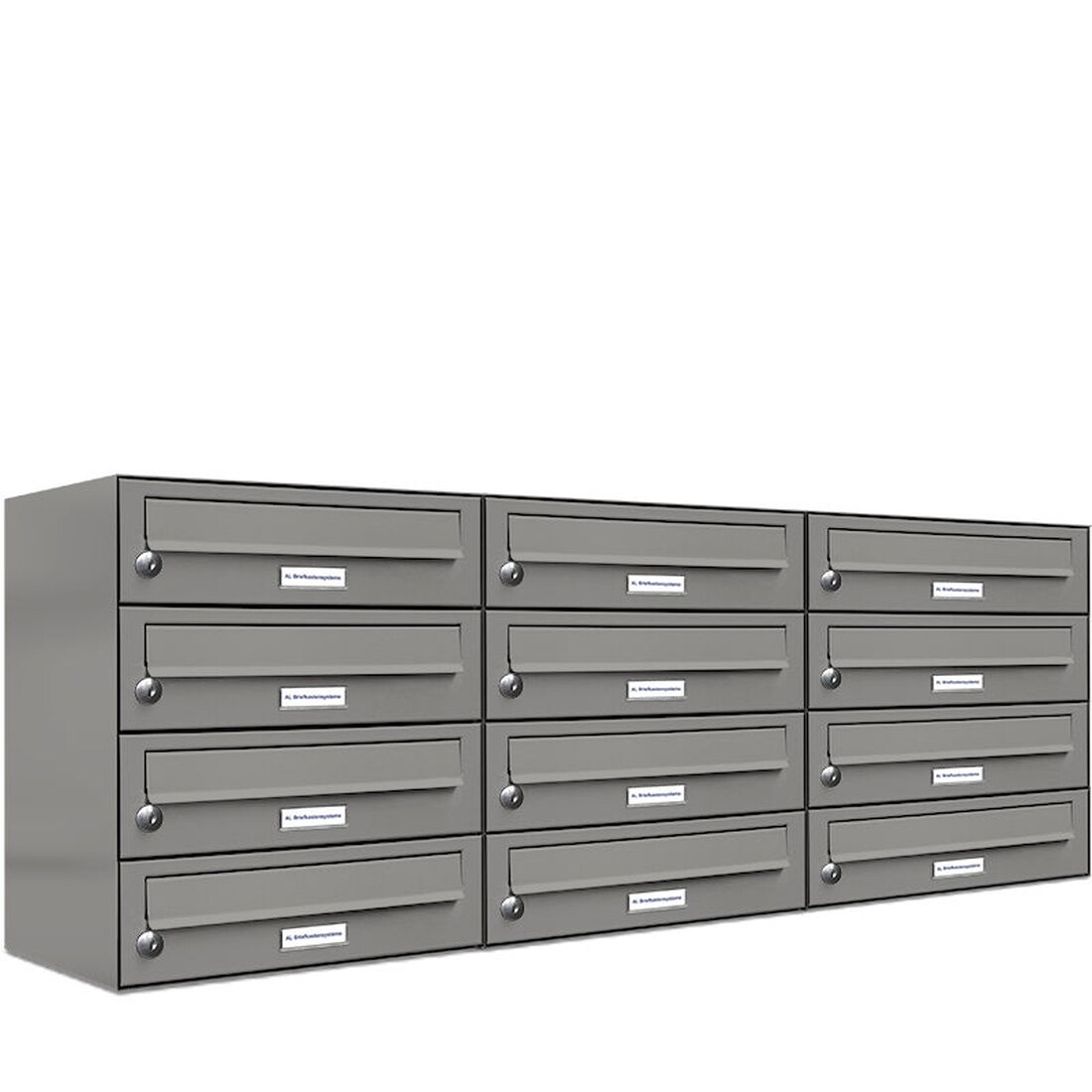 AL Briefkastensysteme 12 Fächer Premium Wand Briefkasten Anlage in RAL 9007 Aluminium Grau, Post A4, robust, wetterfest, Artikelnummer: 132P12EA3P9007