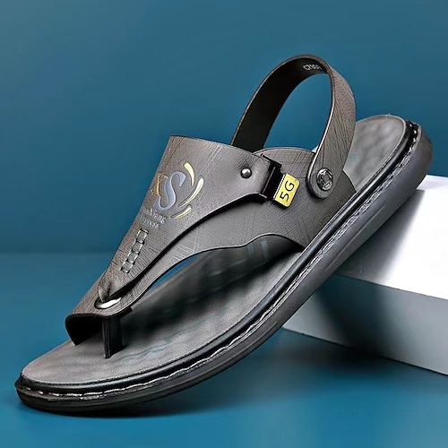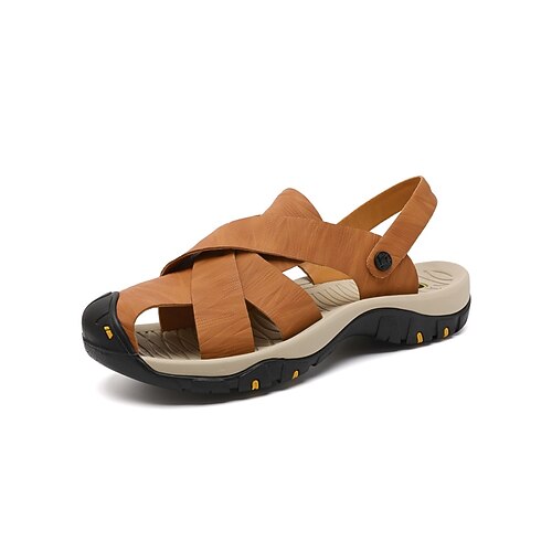 sandali da pescatore in similpelle color cuoio da uomo: scarpe estive traspiranti per uscite informali e abbigliamento da spiaggia