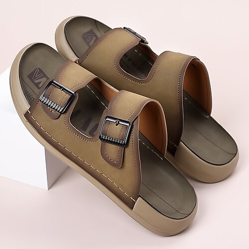 sandali da spiaggia da uomo, in similpelle traspirante, design casual slip-on, ideali per la spiaggia, la piscina e le attività ricreative estive