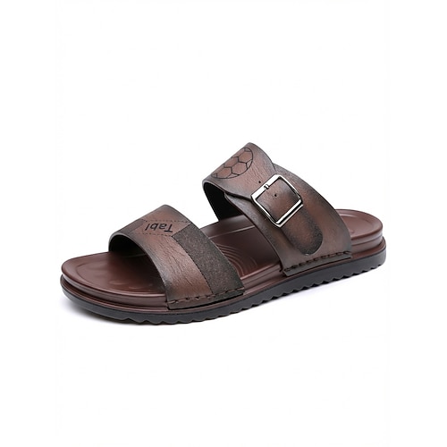 sandali da uomo in similpelle marrone con punta aperta – comode scarpe estive slip-on per la spiaggia, la piscina o il relax casual