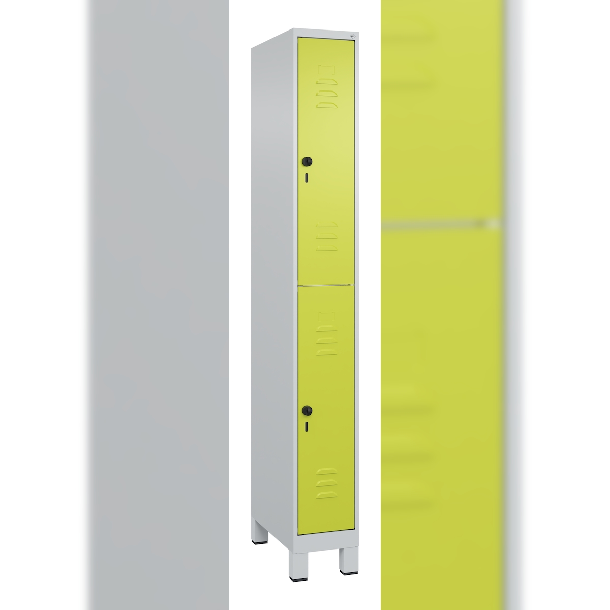 C+P Spind Classic PLUS, Füßen, 2 Abteile, HxBxT 195x25x50cm, Sicherheitsdrehriegel, Hellgrau/Clowngrün von PROREGAL