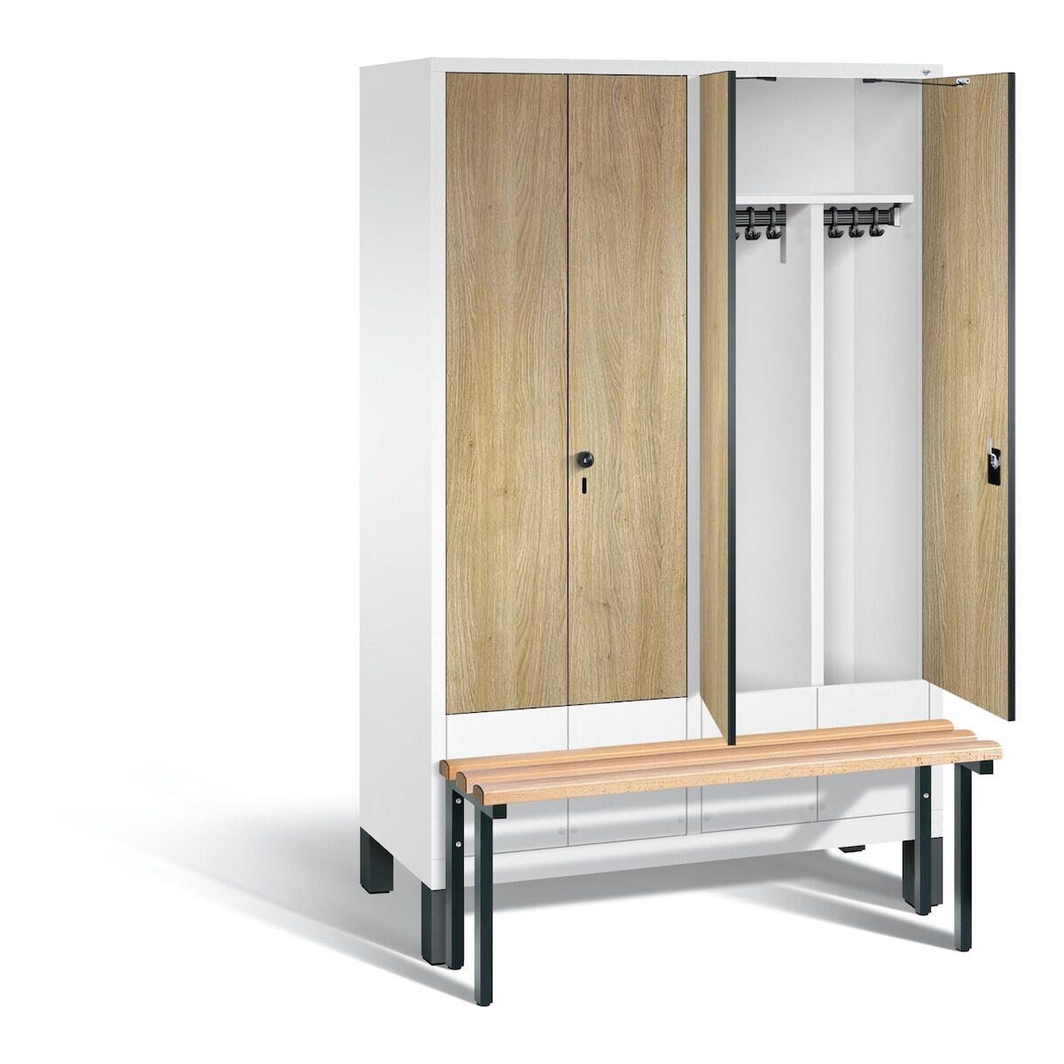 C+P Spind Classic PLUS, schwebender Sitzbank aus Buche 1 Abteil, HxBxT 212x30x82cm, Zylinderschloss, Hellgrau/Hellgrau von PROREGAL