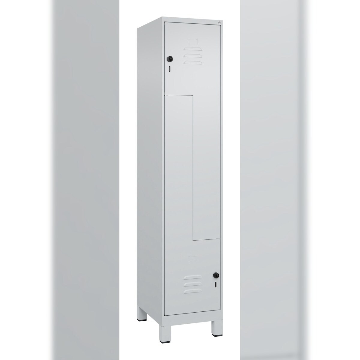C+P Z-Spind Classic PLUS, Füßen, 2 Abteile, HxBxT 195x40x50cm, Sicherheitsdrehriegel, Hellgrau/Hellgrau von PROREGAL