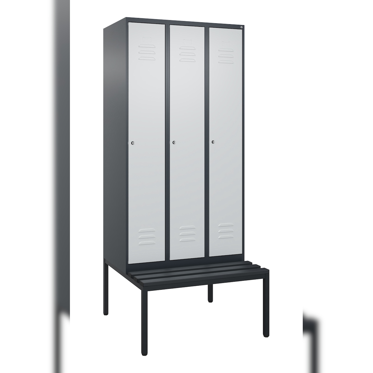 C+P Spind Classic PLUS, Kunststoff untergebaute Sitzbank, 3 Abteile, HxBxT 212x90x82cm, Zylinderschloss, Anthrazit/Hellgrau von PROREGAL