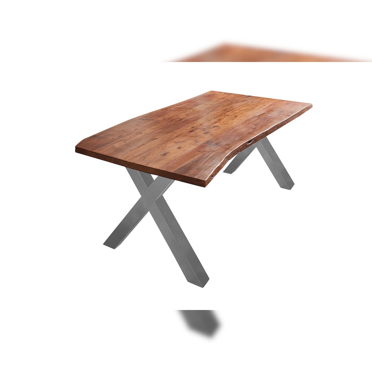 SAM® Esstisch Baumkante massiv Akazie nuss 160 x 85 X-Gestell silber XANTEN