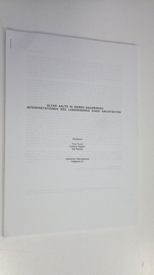 Timo ym. Tuomi : Alvar Aalto in sieben bauwerken - Interpretationen des lebenswerks eines architekten