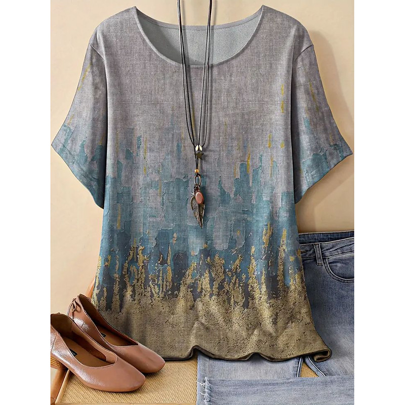 Women's Dressy Tops Elegant Short Sleeve Crew Neck Regular Tops Pink khaki Summer Spring