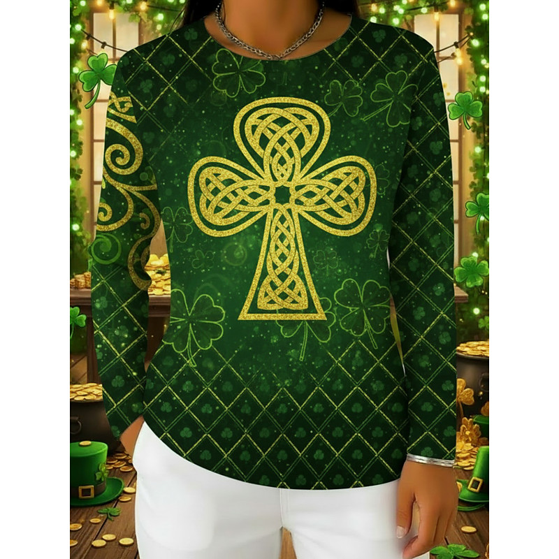 St. Paddy's Day St. Patrick's Day Women's T Shirt Shamrock Fashion Long Sleeve Round Neck Regular Tops Casual St.Patrick's Day Print Grass Green White Light Green Dark Green Orange Spring Fall