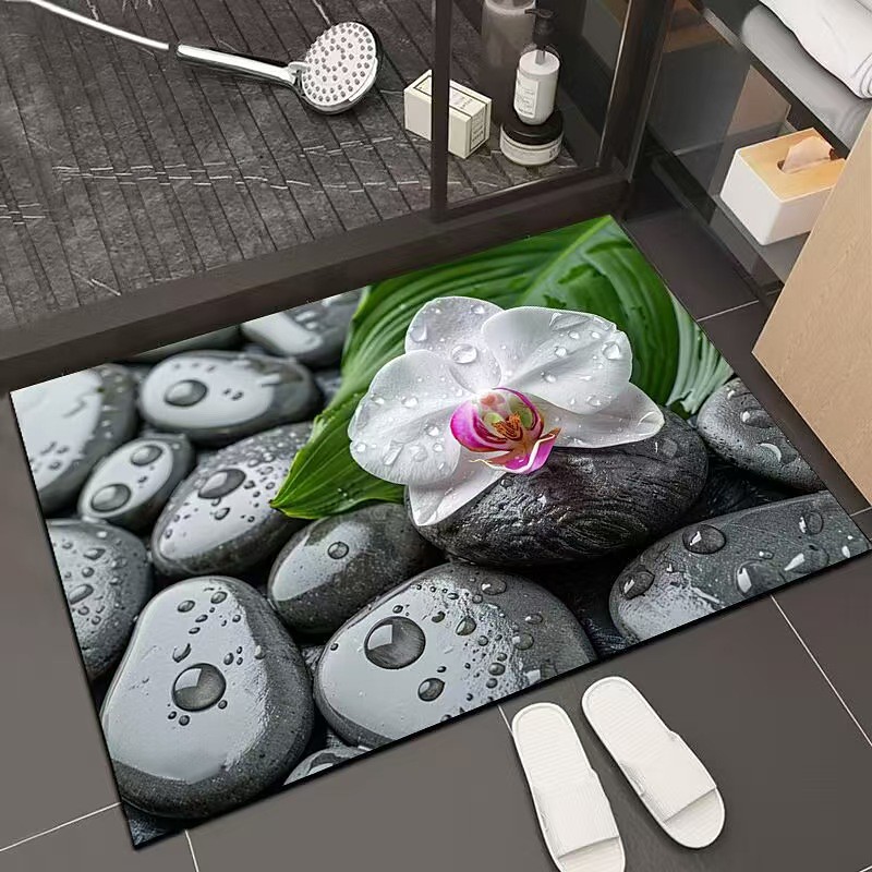 Fußmatte mit 2D-Flachdruck, rutschfest, schnelltrocknend, mit 3D-Blumenmuster, weich, strapazierfähig, pflegeleicht, ideal für Schlafzimmer und Bett.