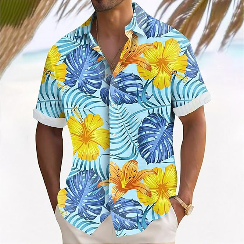 Men's Tropical Flowers Palm Leaf Shirt Summer Hawaiian Shirt Button Up Shirt Short Sleeve Hawaiian Resort Vacation Holiday Beach Wear Summer Spring Turndown 3D Print Collared Shirts Blue Green