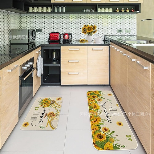 Lange Küchenmatte der Sonnenblumen-Serie – rutschfester, schmutzabweisender und saugfähiger Teppich für den Eingangsbereich Heimgebrauch
