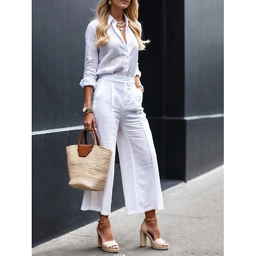 Per donna Set di Pantaloni Bolero Top Manica Lunga Colletto a Camicia Semplice Arricciato Moda Streetwear All'aperto Ufficio Vacanza Nero Bianco Rosa Estate Vestibilità comoda