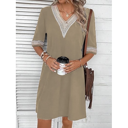 Per donna Abito al ginocchio Abito Bianco Vestito Casual Moda Moderno All'aperto Vacanza Uscire Vestibilità comoda Semplice Mezza Manica Scollo a V Blu Nero Bianco Arancione Estate Primavera