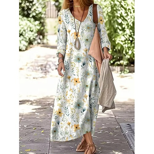 Per donna Abito maxi Vestito T-Shirt Casual Quotidiano Vestibilità comoda Floreale Grafico Manica Lunga Scollo a V Blu Giallo Rosa Estate Primavera