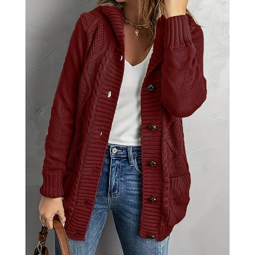 Per donna Felpa Cardigan Streetwear Casual Tinta unica Con Cappuccio Bottoni Lavorato a maglia Manica Lunga Top Regolari Maglia Quotidiano Ferie Weekend Rosso bordeaux Nero Autunno Inverno