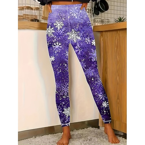 Per donna Leggings Vacanza Vintage Moda Lunghezza intera Vita Alta Grafico Fiocco di neve Stampa Calore Termico Morbido Traspirante Elasticizzato All'aperto Vacanza Streetwear Nero Bianco Rosso