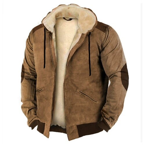 Per uomo Felpa con cappuccio Felpa con cappuccio a zip intera Felpa con cappuccio in pile Felpa con cappuccio foderata in pile Blu Marrone Verde Cachi Con Cappuccio Semplice Patchwork Blocco di colore