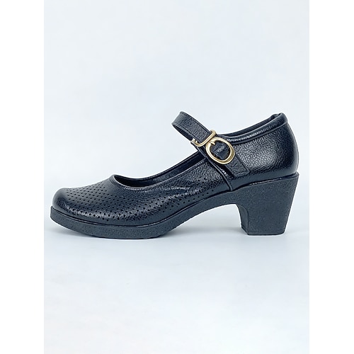 scarpe da ballo professionali da donna, stile mary jane, tacco basso a blocco con cinturino regolabile, scarpe da allenamento in pelle traforata traspirante per donna, ideali per balli da sala, latino