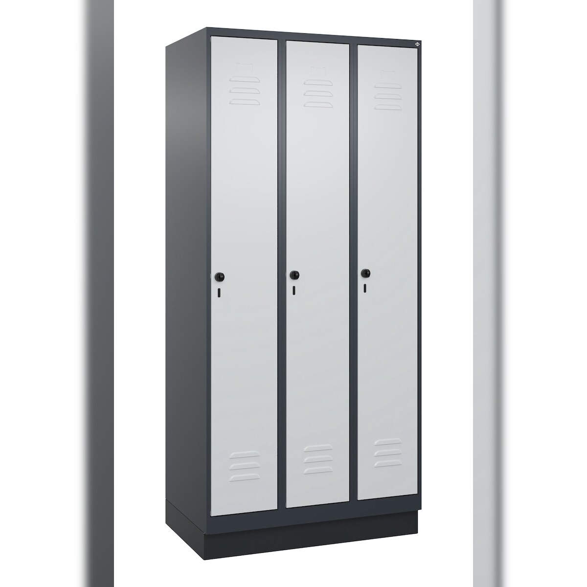 C+P Spind Classic PLUS, Sockel, 3 Abteile, HxBxT 195x90x50cm, Sicherheitsdrehriegel, Anthrazit/Hellgrau von PROREGAL