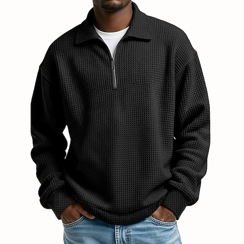 Per uomo Maglia Felpa a nido d'ape Maglione Felpa con zip corta Aalbicocca Nero Bianco Verde chiaro Borgogna Colletto Mao Semplice Tasca a marsupio Testurizzato Casuale Quotidiano Sport Outdoor