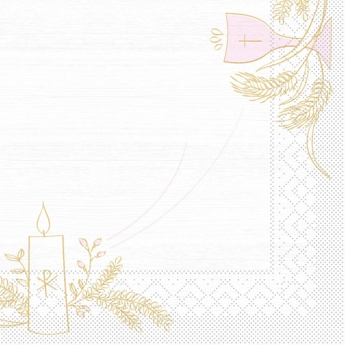 Mank Serviette aus Tissue Kommunion/Konfirmation Holz in Rosa-Grau, 33 x 33 cm, 100 Stück