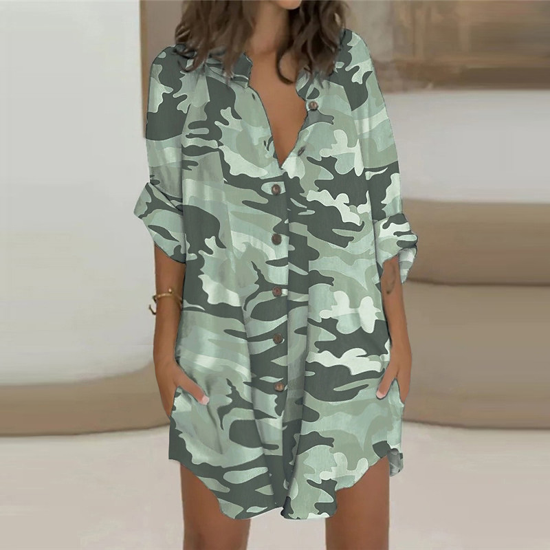 Women's Shirt Dress Casual Dress Mini Dress Date Vacation Modern Casual Shirt Collar Button Print Short Sleeve Summer Spring Loose Fit Floral Leaf