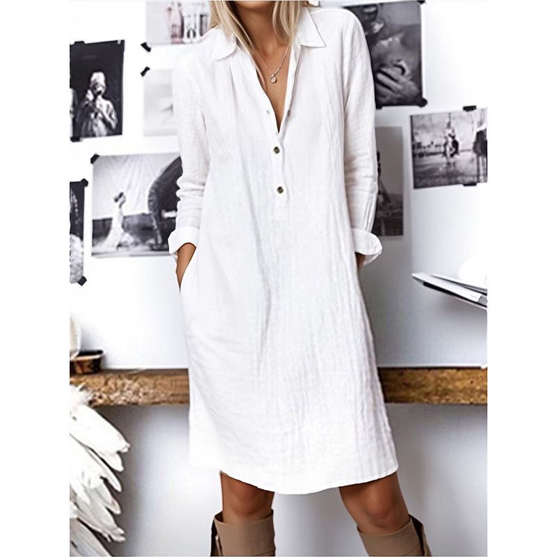 Women's Black White Red Summer Spring Midi Dress Linen-Inspired Dresses White Dress Shirt Dress Basic Modern Daily Weekend Loose Fit Plain V Neck
