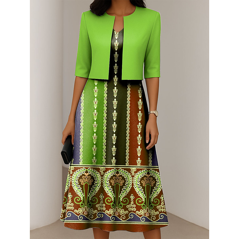 Women's Dress Set A Line Dress Summer Dress Elegant Casual Graphic Paisley Print Midi Dress Half Sleeve V Neck Formal Vacation Yellow Blue Purple Spring Fall Regular Fit