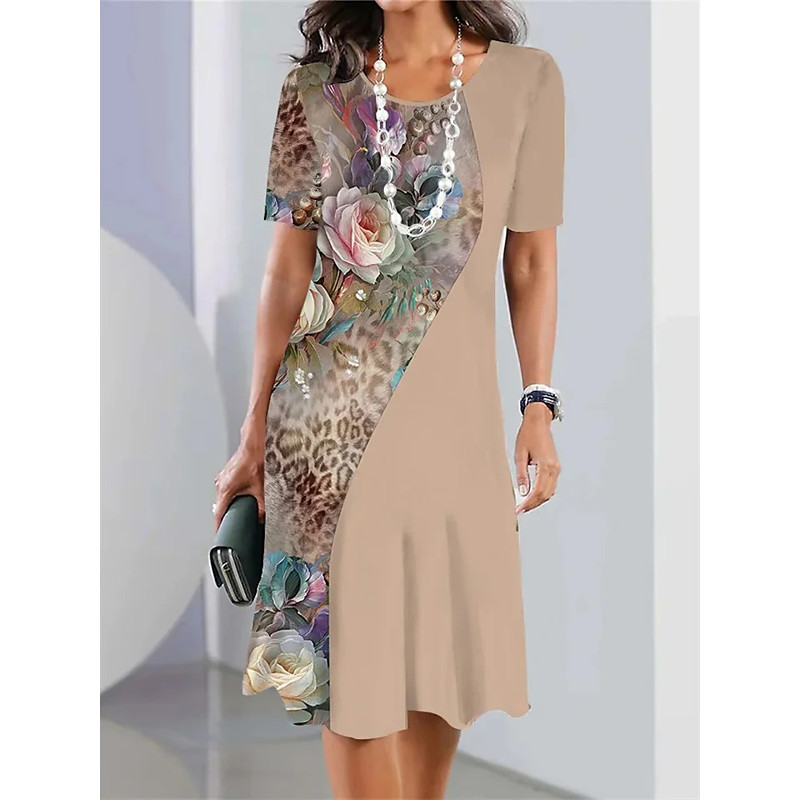 Women's Elegant Midi Dress T Shirt Dress Tee Dress Shift Dress Party Evening Casual Formal Daily Regular Fit Floral Abstract Short Sleeve Crew Neck White Pink Light Brown Spring