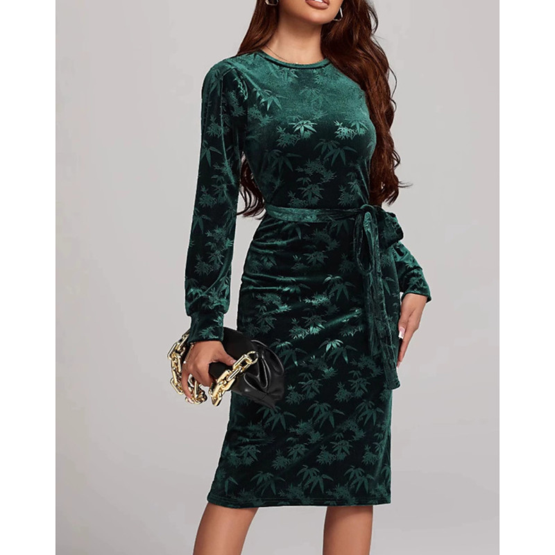 Women's Midi Dress Christmas Dress Velvet Dress Cocktail Dress Elegant Fashion Modern Outdoor Party Party Evening Wear Regular Fit Plain Long Sleeve Crew Neck Green Spring Autumn