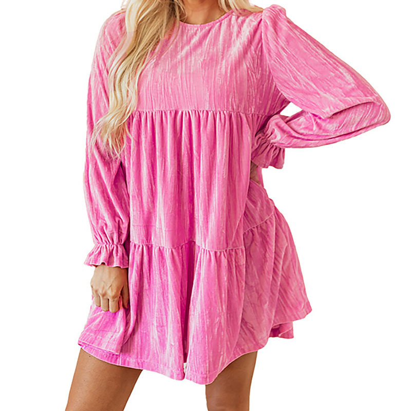 Women's Mini Dress Velvet Dress Peplum Dresses Fashion Modern Daily Going out Weekend Loose Fit Plain Long Sleeve Crew Neck Black Green Khaki Rose Red Spring Fall Winter