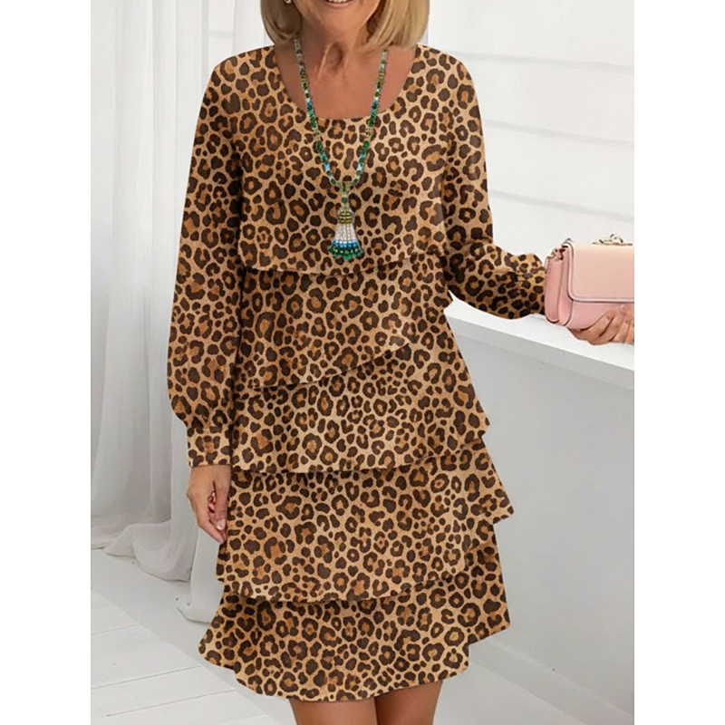 Women's Mini Dress Casual Dress Chiffon Dress Shift Dress Tiered Dress Elegant Fashion Modern Outdoor Daily Weekend Regular Fit Leopard Long Sleeve Crew Neck Leopard Summer Spring Fall