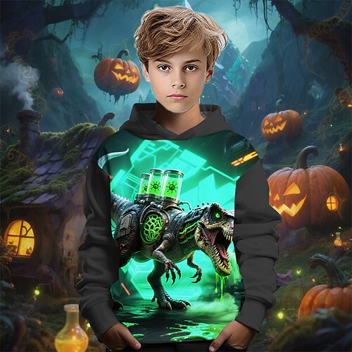 Halloween Jungen 3D Kürbis Dinosaurier Kapuzensweatshirt Langarm Frühling Herbst Mode Streetwear Kinder 4-12 Jahre Mit Kapuze Outdoor Lässig Täglich Normale Passform