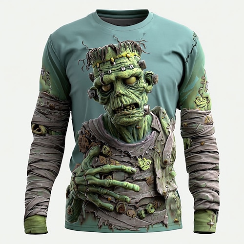 Halloween Herren Zombies 3D T Shirt Langarm T-Shirt 3D-Druck Rundhalsausschnitt Hemd Mode Übertrieben Straße Lässig Täglich Grün 2# Blau Grün Sommer Frühling Herbst Bekleidung S M L XL XXL XXXL