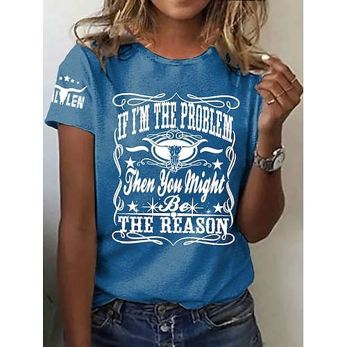 Per donna Maglietta Grafico Lettera Vintage Elegante Classico Manica Corta Girocollo Top Regolari Quotidiano Stampato Nero Bianco Blu Verde Grigio Estate Primavera