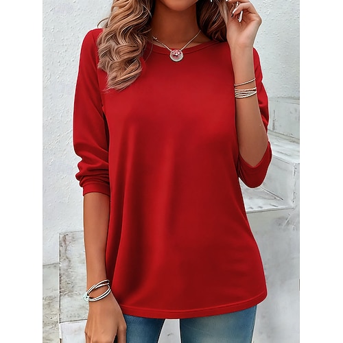 Per donna Maglietta Semplice Vintage Elegante Classico Manica Lunga Girocollo Top Regolari Quotidiano Stampato Blu Nero Bianco Giallo Rosa Primavera Autunno Inverno