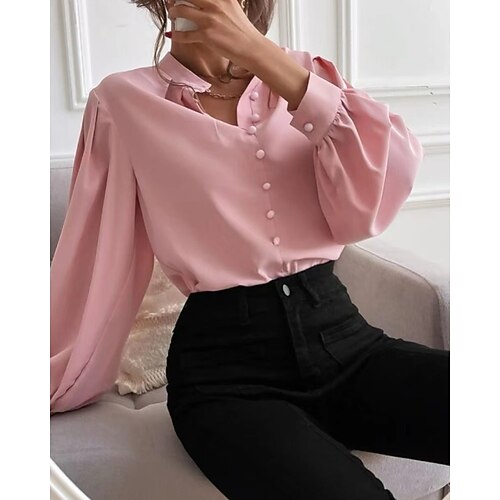 Per donna Camicia Blusa Tinta unica Casual Manica Lunga Girocollo Top Regolari Ferie Uscire Bottoni Blu Nero Bianco Rosa Vino Estate Primavera