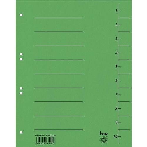 Bene Trend 1 bis 10 Trennblätter DIN A4 Grün 10-teilig Pappkarton 6 Löcher 50 Stück