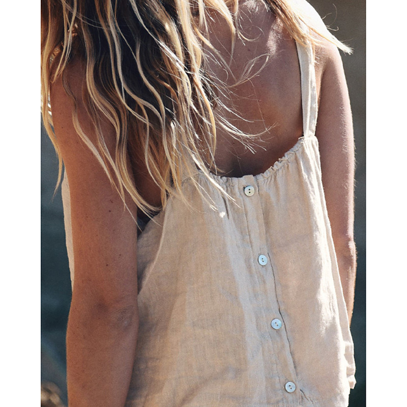 Women's Cotton Linen Vest Blouse Plain Modern Sleeveless Strap Regular Tops Daily Holiday Buttons White Yellow Khaki Apricot Summer