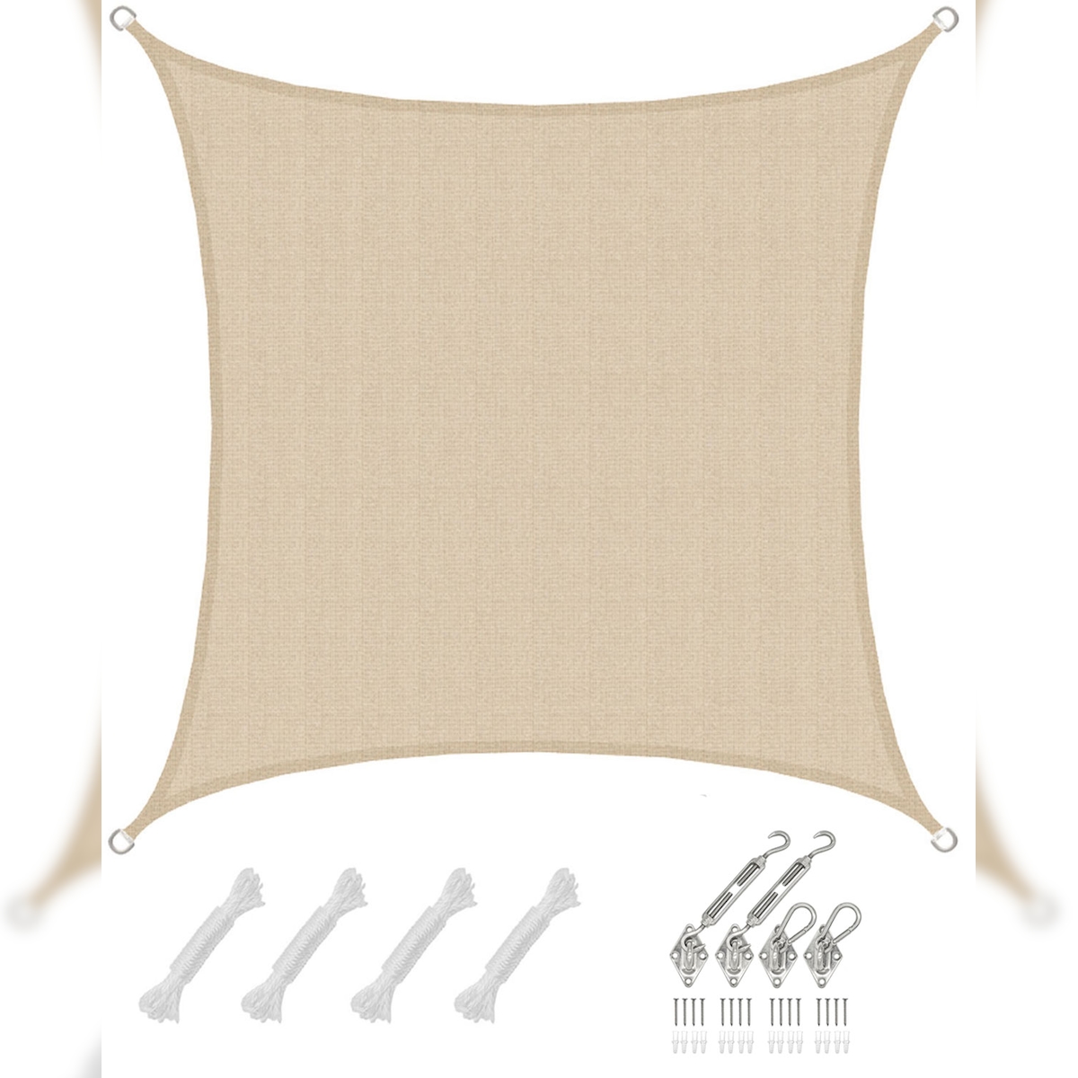 3x3 UV Sonnensegel Viereckig Atmungsaktiv - Sonnenschutz Segel mit Befestigung