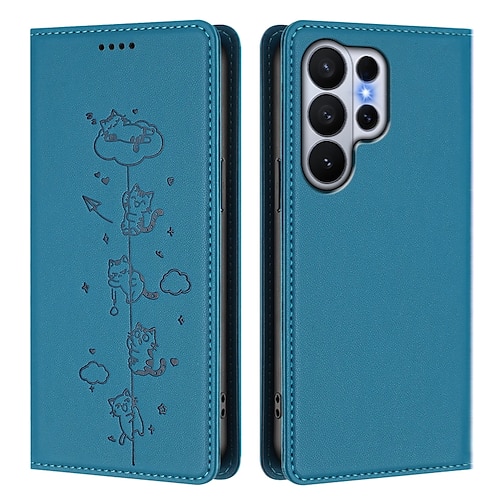 Handy Hülle Handyhüllen Für Samsung Galaxy S26 Ultra Plus S25 Edge S24 S23 FE S22 Plus Ultra Brieftaschenhülle Stoßfest Katze TPU PU-Leder