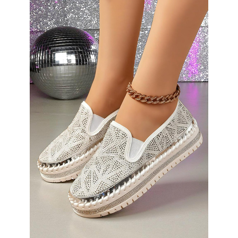Glitter Bridal After Party Shoes for Bride, Sparkly Bow Slip-On Wedding Reception Flats