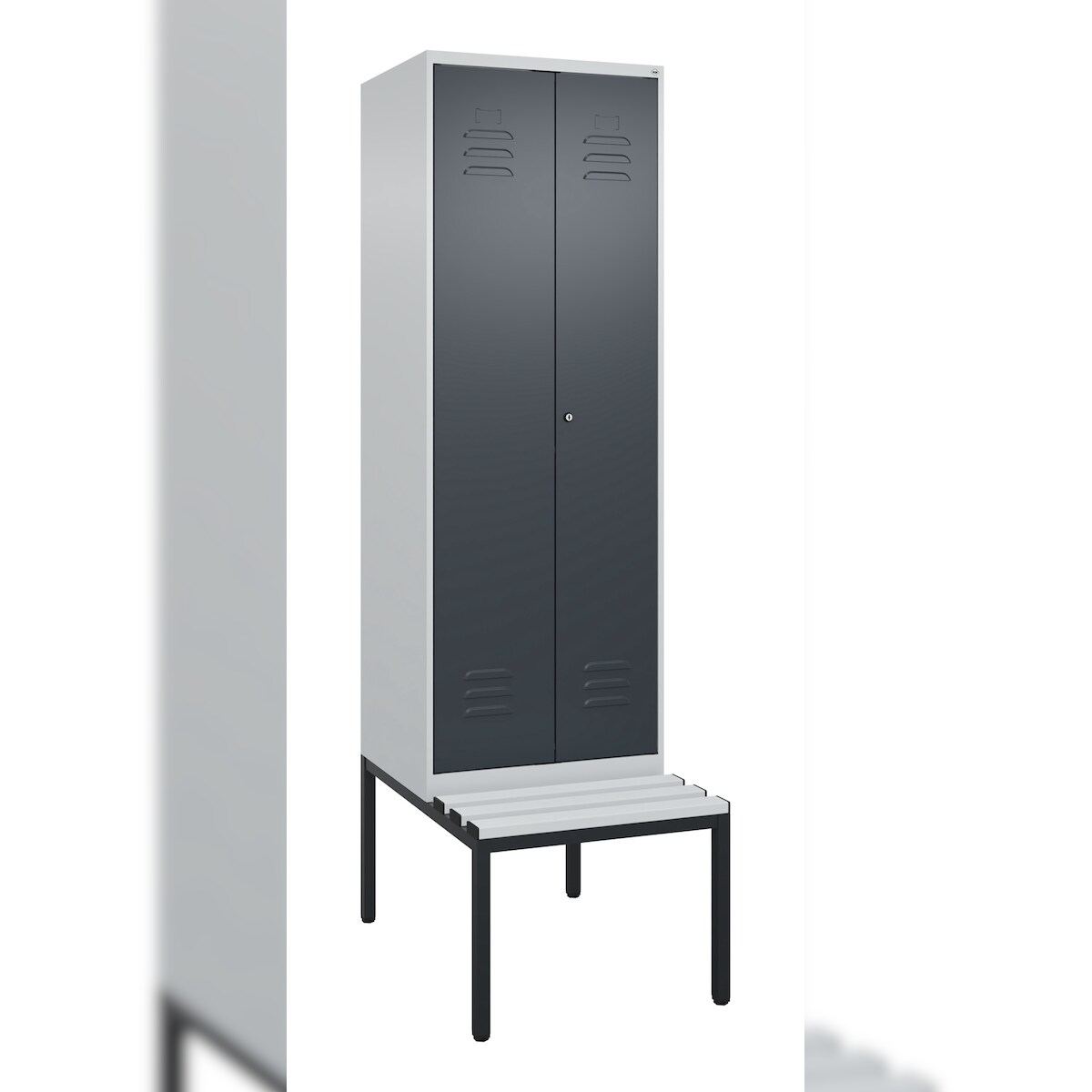 C+P Z-Spind Classic PLUS, Buche untergebaute Sitzbank 2 Abteile, HxBxT 212x30x82cm, Zylinderschloss, Hellgrau/Lichtblau von PROREGAL